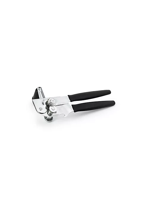 Easily open up your cans! The Easy Crank Can Opener features longer handles and a large turning crank, eliminating stress on your hand whether opening one can or 100. The black, soft rubber coating on its handles and crank make the can opener comfortable to hold. This opener has a high-carbon, gear-driven cutting wheel and skip-proof feed for smooth and easy usage. Also features a built-in bottle opener! Take away the pain and strain from your hands.