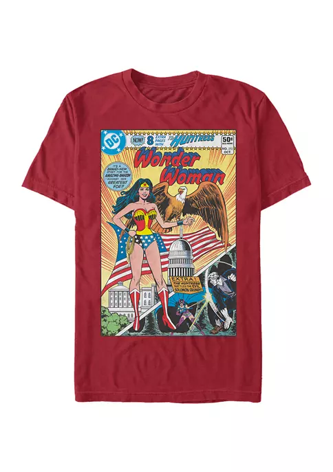 Watch out, villains! You don’t stand a chance against this officially licensed DC Comics Justice League t-shirt! Some of your favorite DC heroes like Batman, Superman, Green Arrow, and Wonder Woman are portrayed across a fun comic book-inspired design that represents the beloved “JLA” or Justice League of America.
