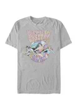 Watch out, villains! You don’t stand a chance against this officially licensed DC Comics Justice League t-shirt! Some of your favorite DC heroes like Batman, Superman, Green Arrow, and Wonder Woman are portrayed across a fun comic book-inspired design that represents the beloved “JLA” or Justice League of America.